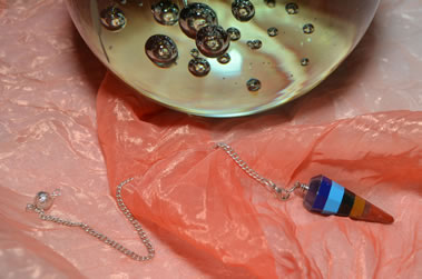 The pendulum is attached to a 7.9" (20 cms) chain by a small clasp, which allows the pendulum to be used as a pendant. The chain has a small silver sphere at the end which facilitates holding the pendulum during dowsing sessions.